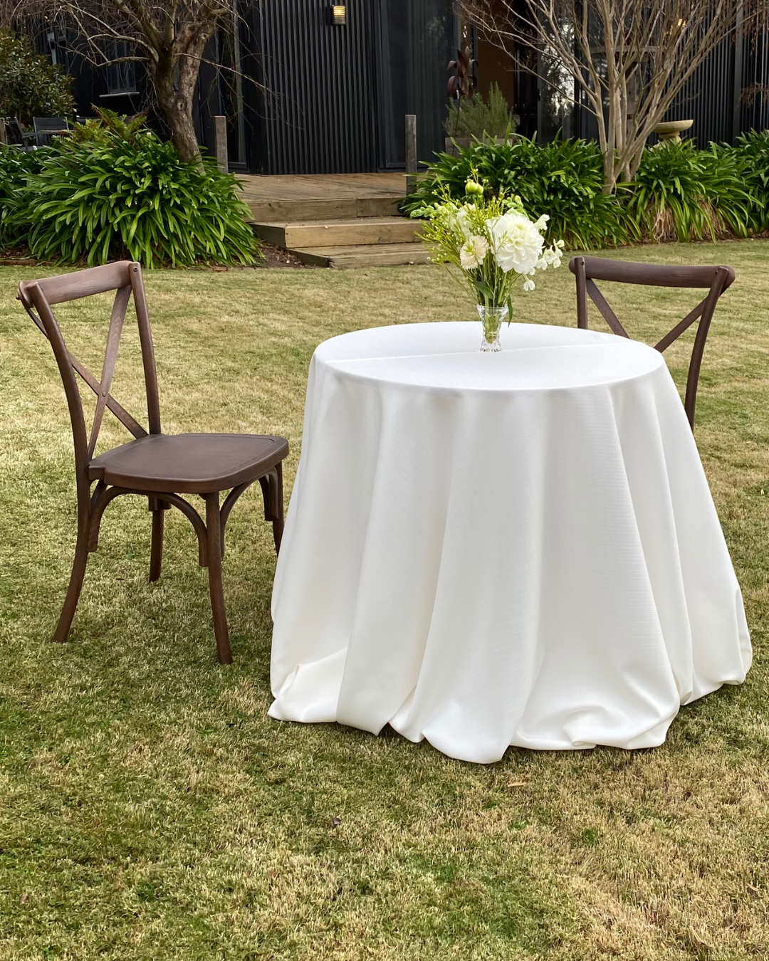 Cafe table up to 1.1m diameter with relaxed overhang as shown in photo
